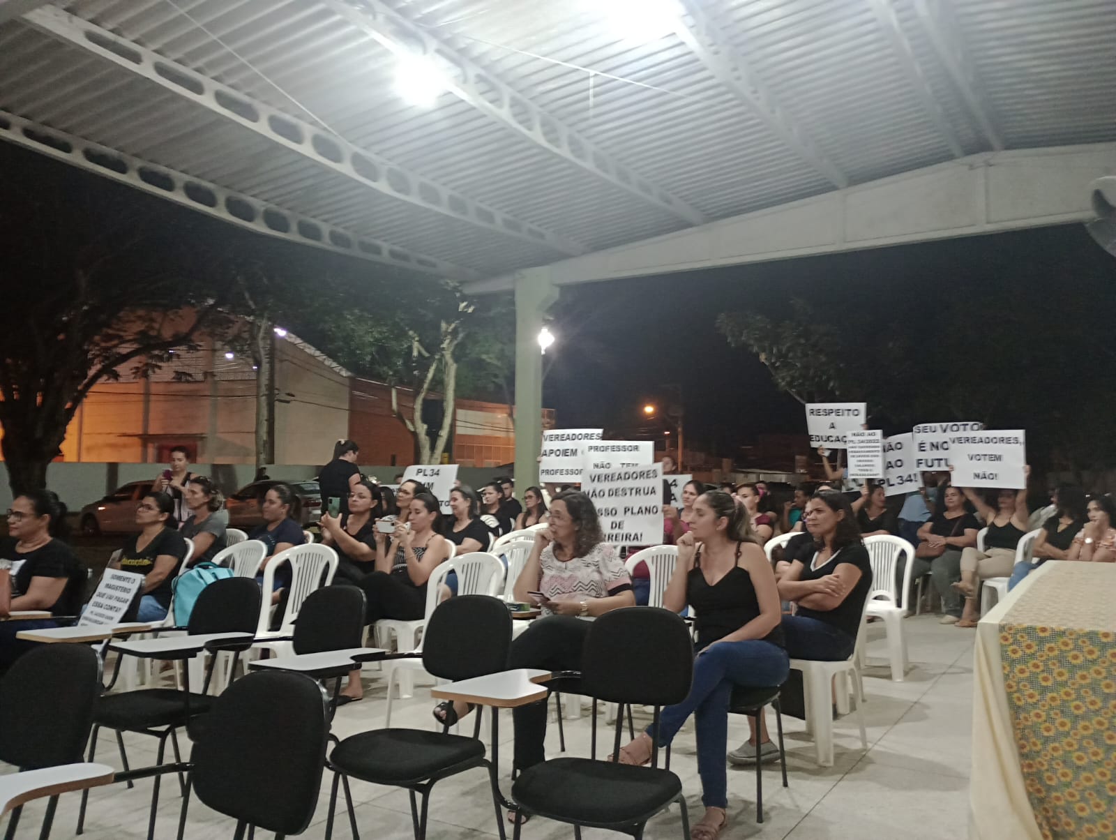 Estiveram presentes o presidente da Câmara Municipal Renato Barros, o vereador Sandro Rosa Viana, o vereador Carlos Venancio, a vereadora Sheila Faria dos Santos e o vereador Maicon Gomes de Moraes, o secretário de educação Roberto Telau, o secretário de fazenda Sedrick Vasconcelos, o presidente do sindicato Erivelton Pessin e a professora Rosicleia Wagmacker e o público representando o magistério municipal.